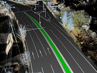 大学と共同開発し、特許を取得した3 次元可視化システム「MoMoS」は、モービルマッピングシステム(MMS)で取得した点群データをもとに作成された3 次元モデルデータと写真画像をもとに、現況確認をソフトウェア上で行うことができます。